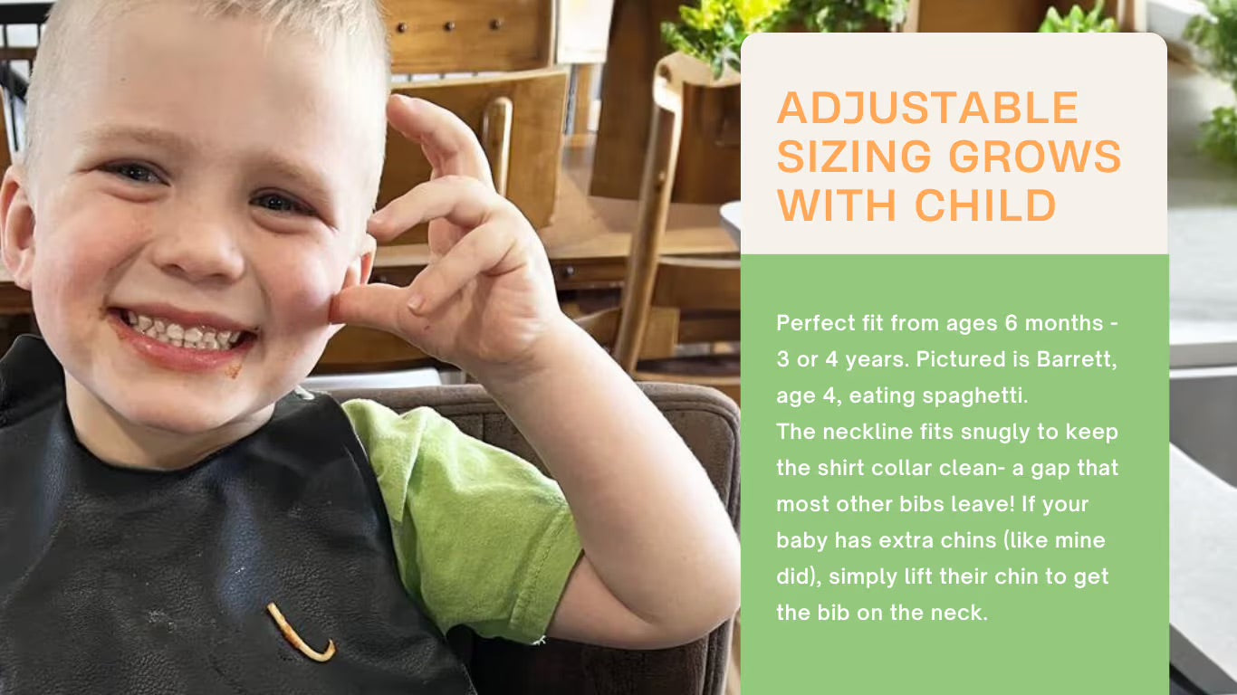 This bib is great! It;s the only bib you'll need and will last through multiple kids. It's a little pricey but the durability and longetivy of the bib makes up for it. Definitely worth it!