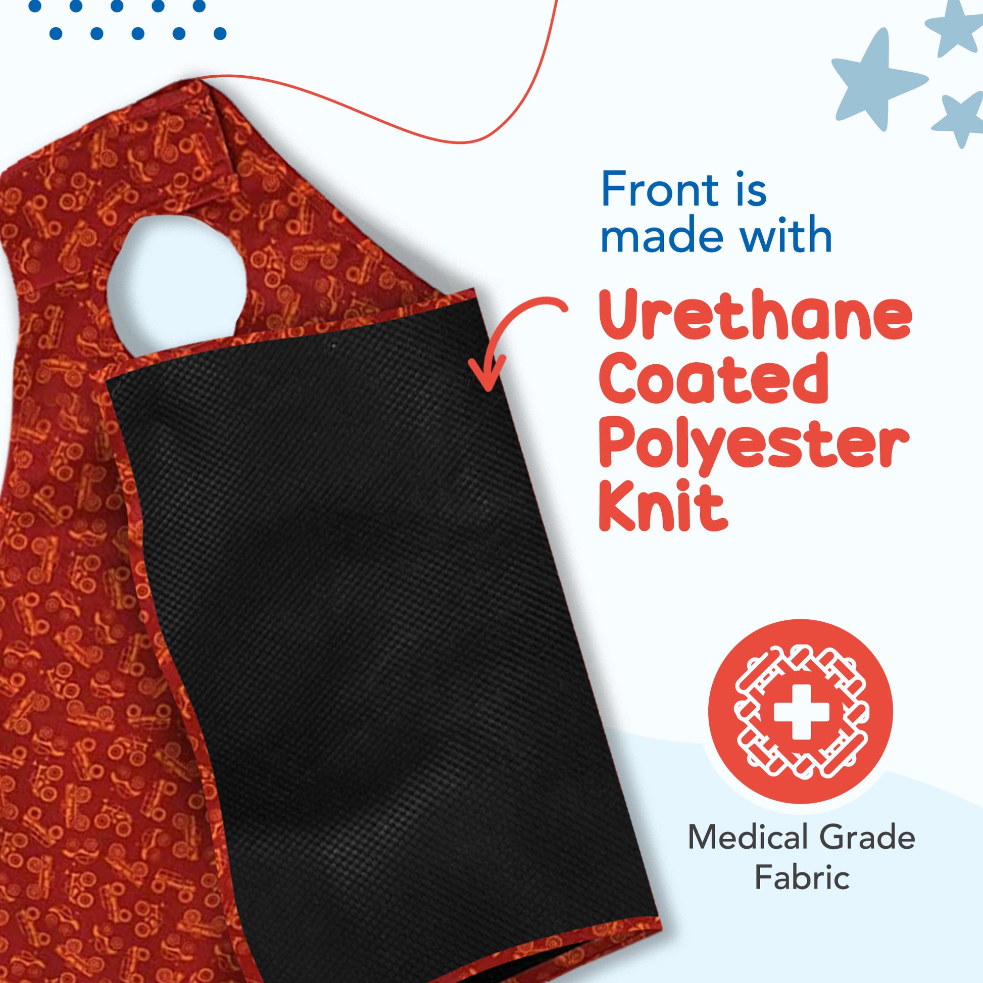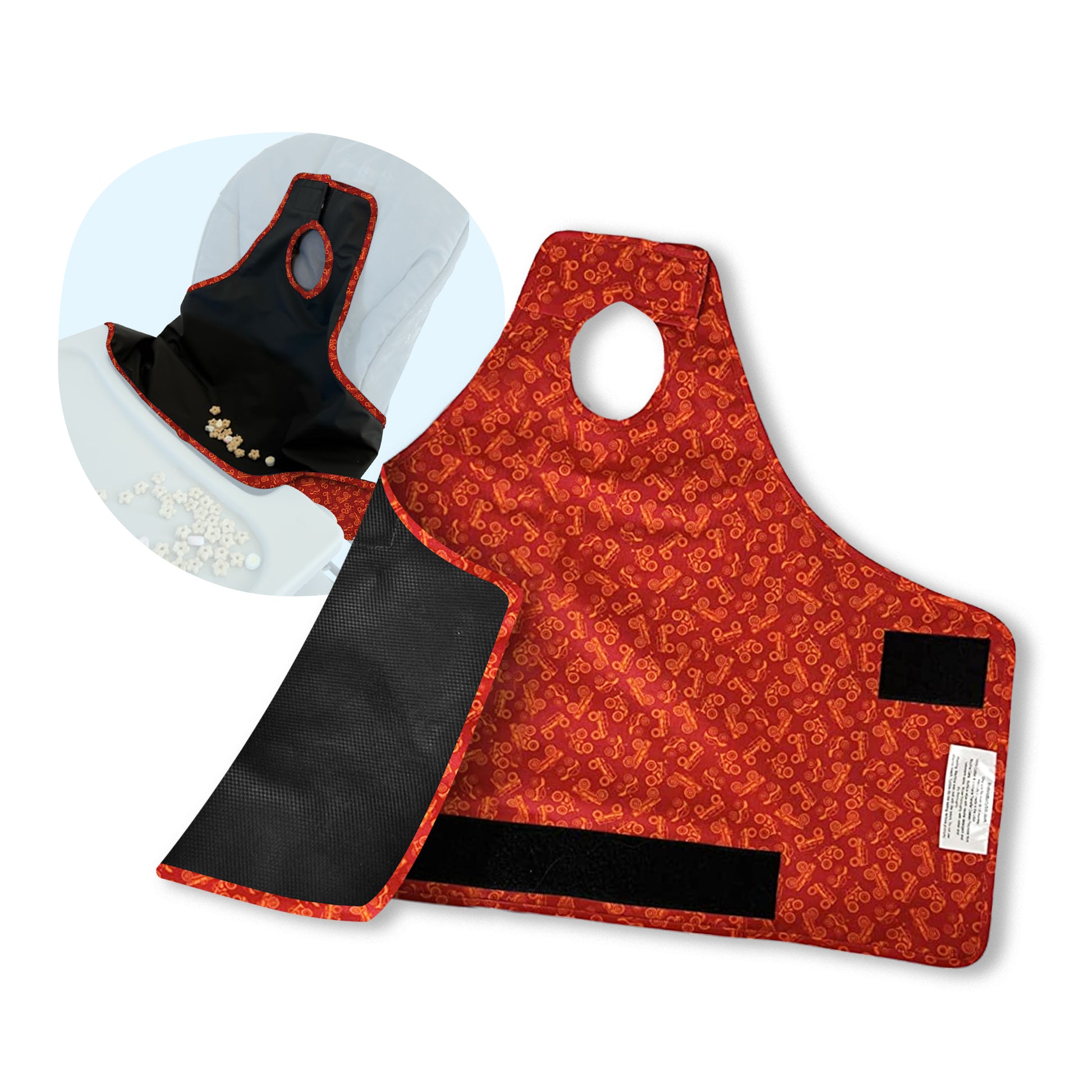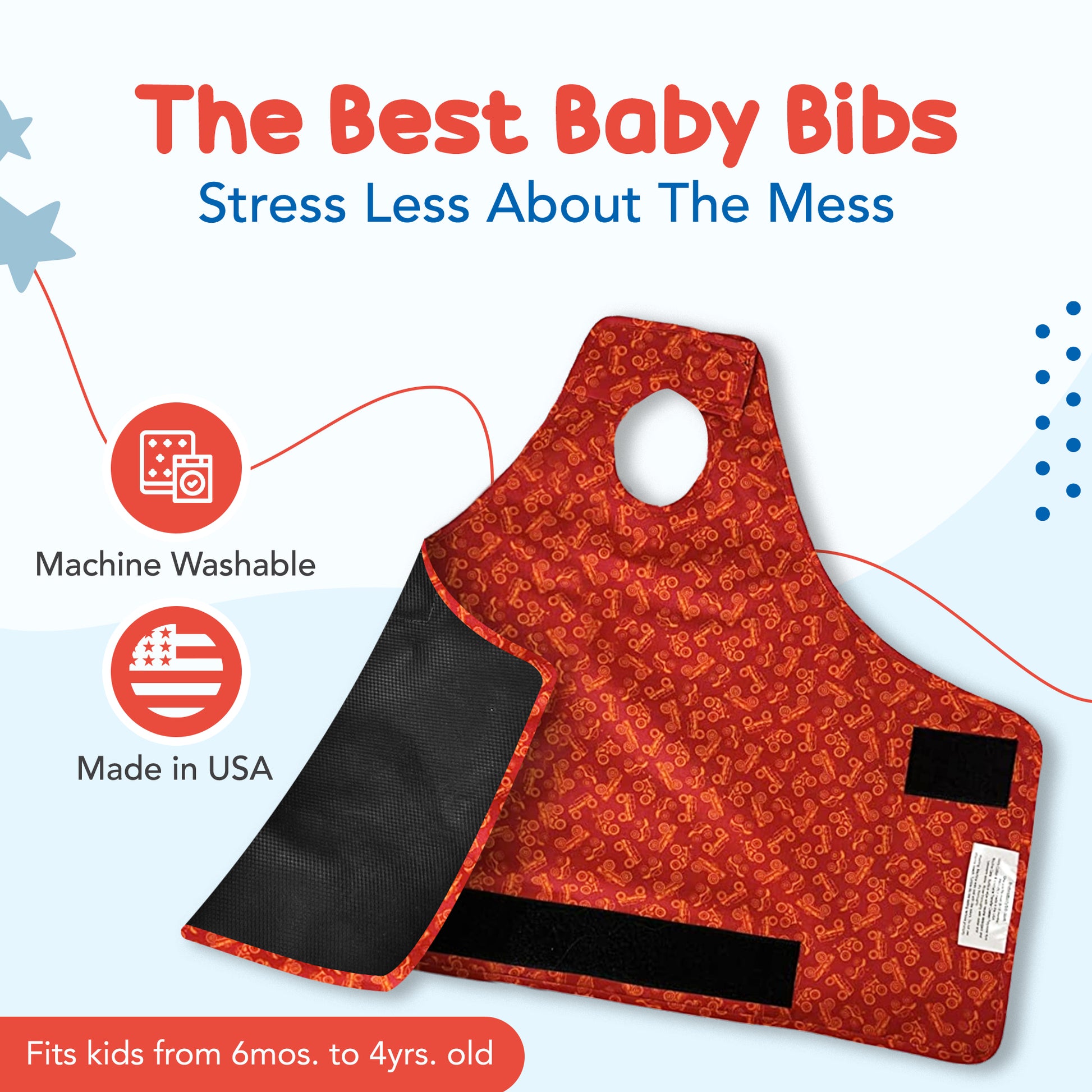 Cuts clean up time in half after messy meals & dramatically reduces laundry! Rinse, wipe and/or shake off into the sink. Reuse at every meal all day; multiple times before machine washing (usually weekly).