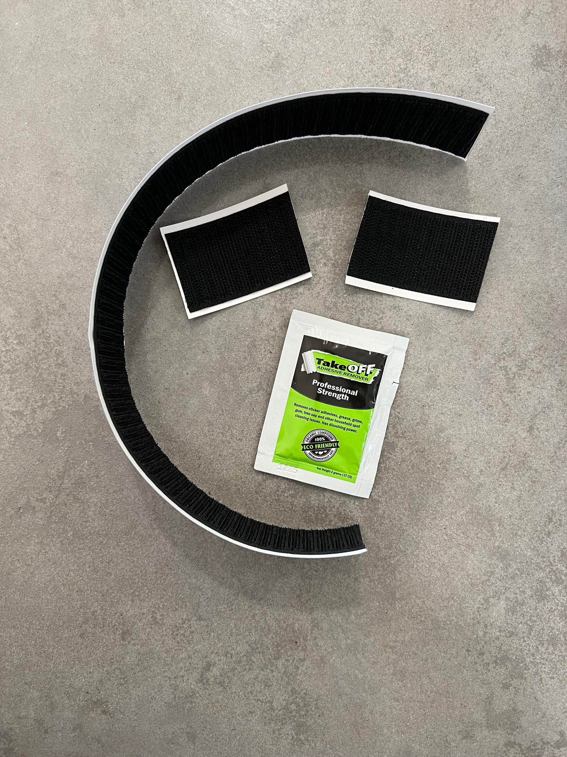 Replacement adhesive backed hook & loop for high chair attachments. May need to replace every 6 -12 months depending on use and preference. Included: tray attachment strip, seat attachment strips (2), environmentally friendly adhesive remover pad (Take Off)